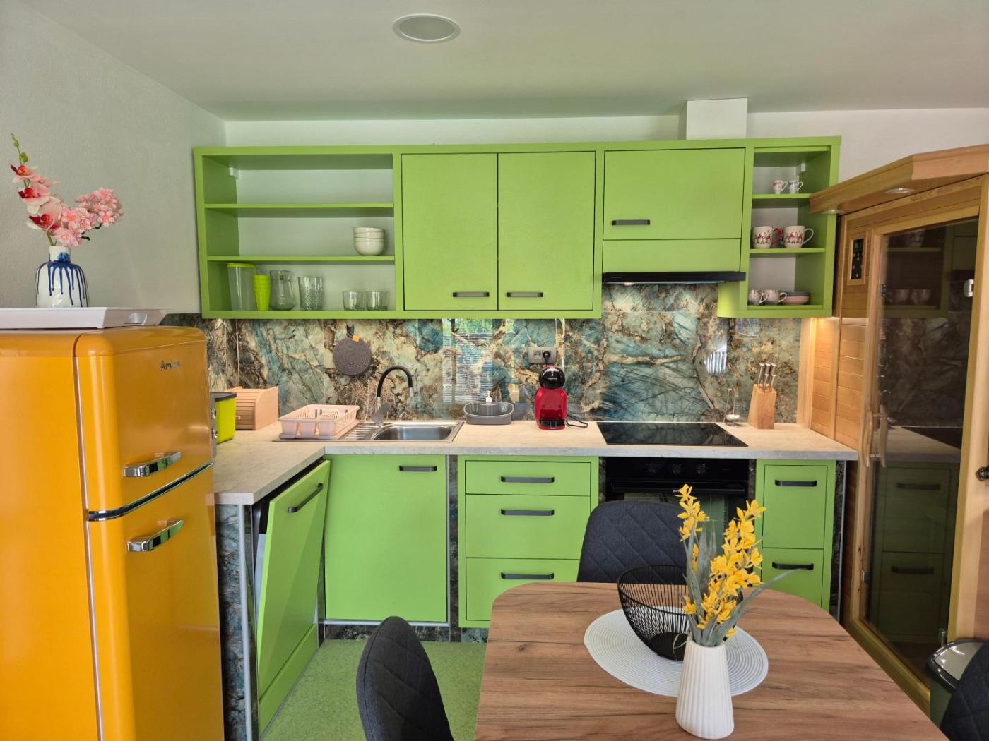 Featuring a seasonal outdoor pool, a sauna and a hot tub, GREEN LAND Family Fun Sport Resort is located in Šmarje pri Jelšah, 37 km from Beer Fountain Žalec and 47 km from Maribor Train Station. The property features pool andcourtyard views, and is 16 km from A-Golf Olimje. The apartment provides rooms with air conditioning, free private parking and free WiFi.